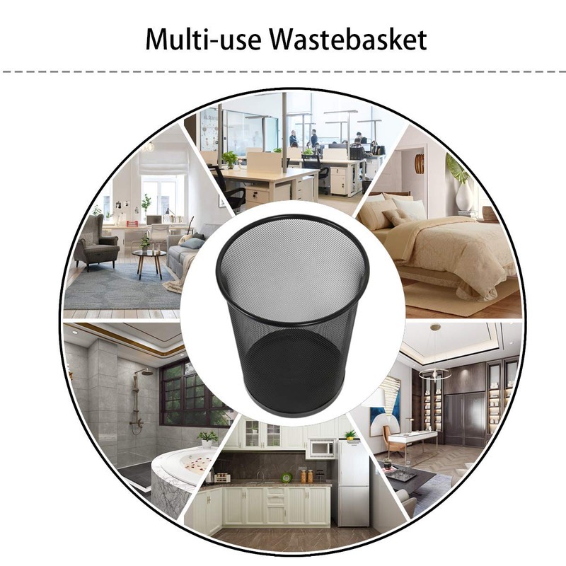 DIVCHI Circular Mesh Wastebasket Trash Can, Waste Basket Garbage Can Bin for Bathrooms, Kitchens, Home Offices, Dorm Rooms(BLACK)
