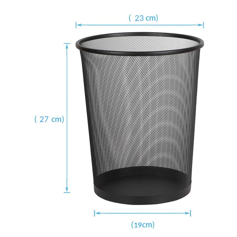 - ATTRACTIVE FINISH: Constructed from a steel mesh casing in a black epoxy finish with a reinforced top rim and solid steel base. Epoxy finish is attractive but tough. Round Mesh Waste Bin Size : 27cm x 23.5cm x 19cm.