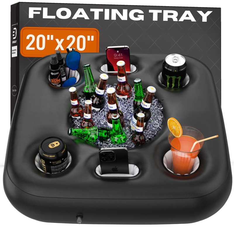 - KEEP EVERYTHING WITHIN REACH: Innovative, one-of-a-kind inflatable drink holder designed to keep everything you need within arms reach