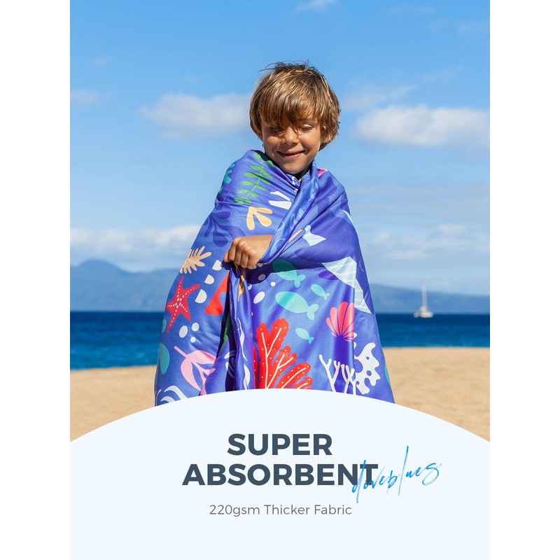 Diveblues Kids Microfiber Beach Towel - Quick Dry, Sand Free - Compact, Lightweight, Absorbent, Small (152x76cm, 60''x30'')