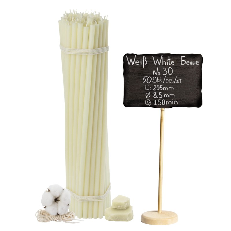 - Stable and reliable – 50 pieces dyed beeswax candles with 29.5 cm length, diameter 8.5 mm, 700 g and a burning time of 150 minutes. - Flawless burning properties thanks to high-quality work