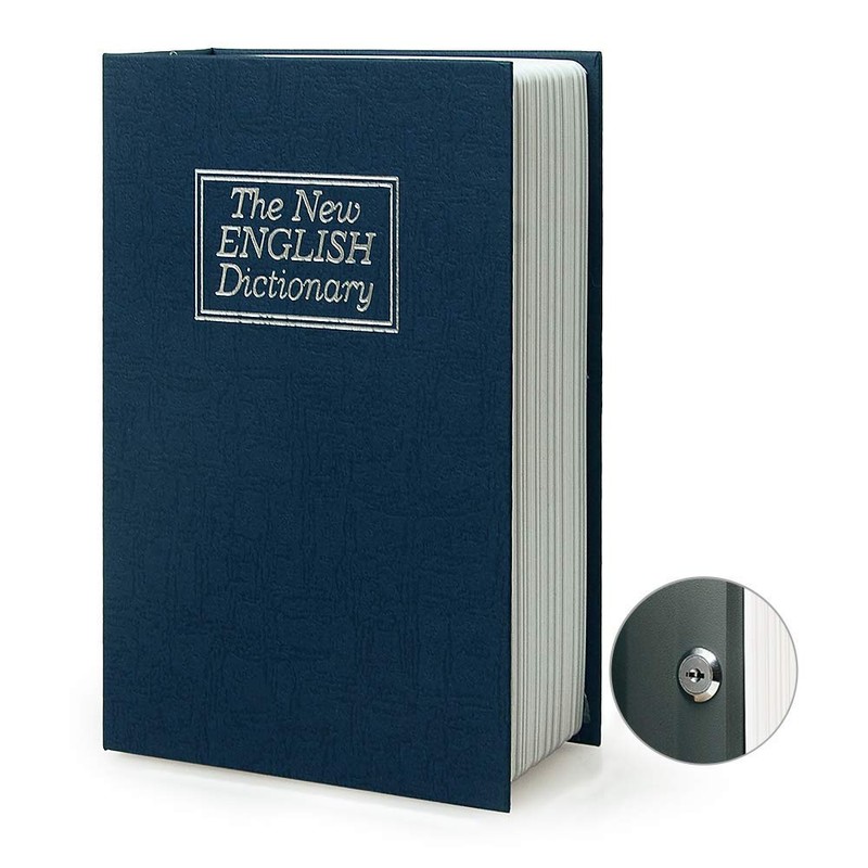 Diversion Book Safe Storage Box (9.5"×6"×2.2"), Dictionary Secret Safe Can with Security Key Lock, Diversion Book Hidden Safe (Blue dictionary,Key)
