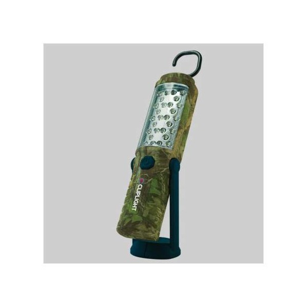 - Lights on front and top with three AAA batteries included. Available in yellow or camo