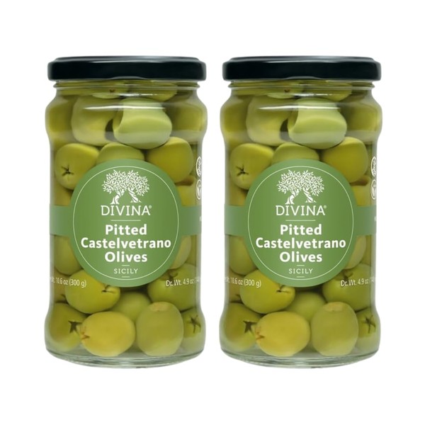 DIVINA Castelvetrano Pitted Olives, 10.6 oz, 2 Pack