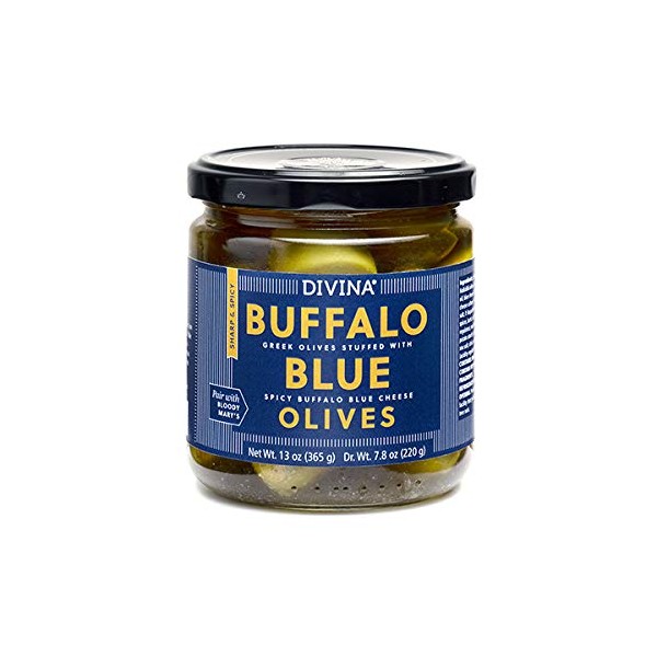Divina Spicy Buffalo Blue-Cheese-Stuffed Greek Olives, 13 Ounce Net Weight