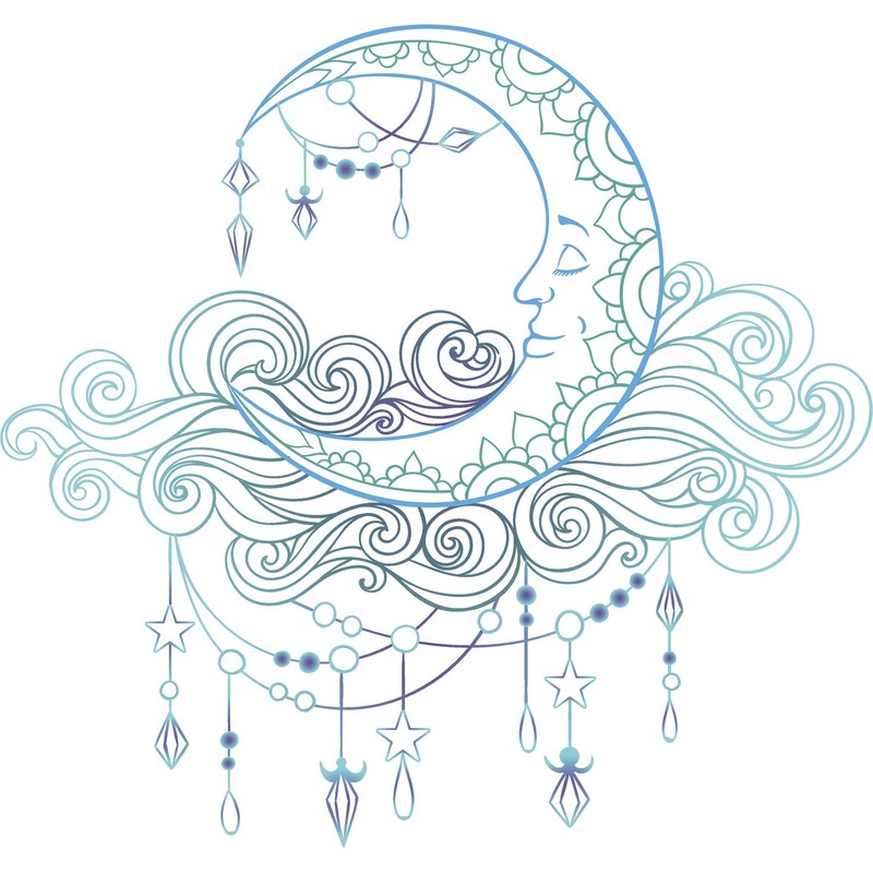 Divine Designs Retro Blue Purple Boho Crescent Moon Cartoon Vinyl Decal Sticker (4" Wide)