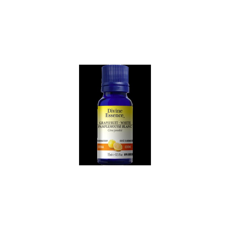 Divine Essence White Grapefruit essential oil is certified organic and has a fresh, fruity and zesty scent. Grapefruit essential oil is known for its various health and wellness benefits, making it popular in aromatherapy and natural skincare products. It is often used to promote feelings of relaxation, uplift mood, reduce stress, and increase mental clarity and focus. White Grapefruit essential oil from Divine Essence can be used in aromatherapy to help relieve stress and nervous exhaustion as well as to help relieve edema. It is also said that White Grapefruit essential oil can help with reducing the appearance of cellulite. [LIQUID]