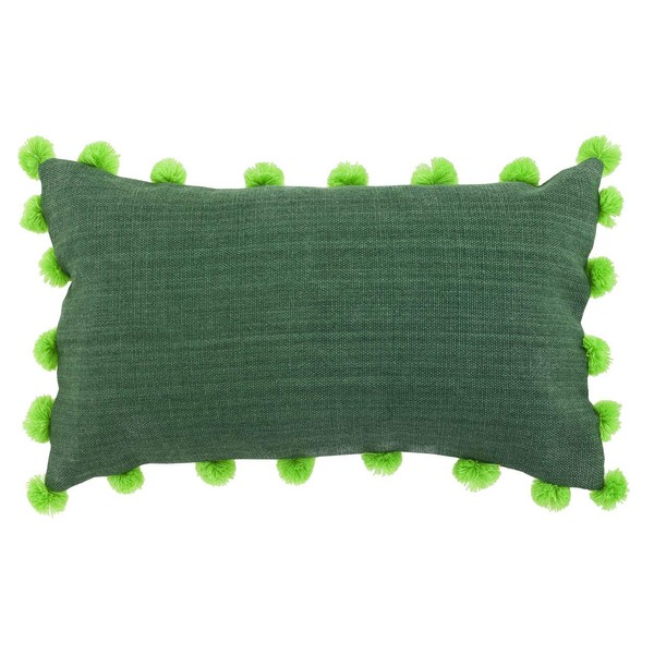 Divine Home Infinity Solids Outdoor Pillow, Green, 12" x 20" with Pompoms