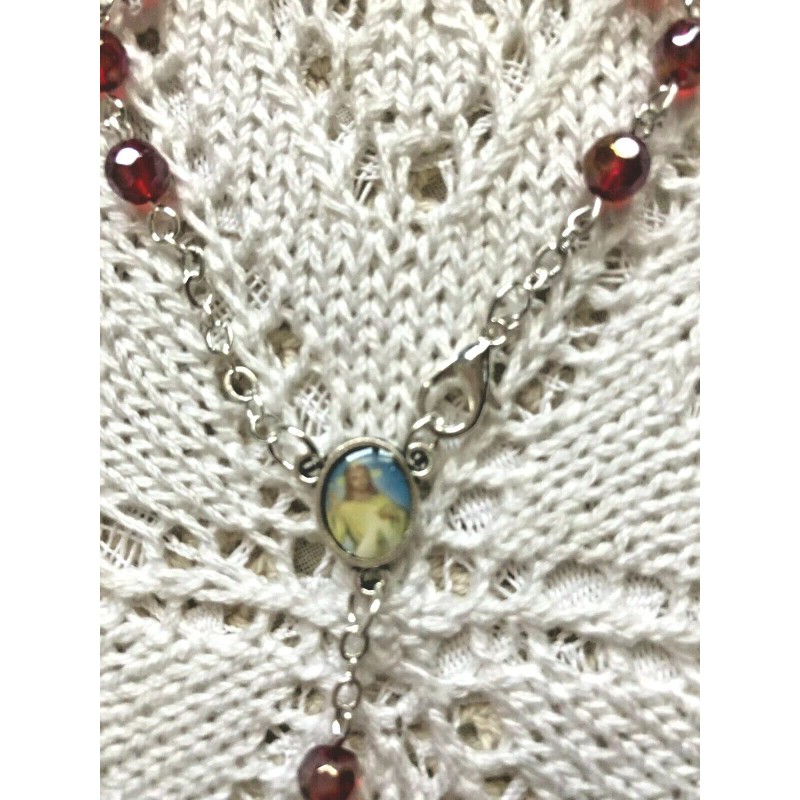 DIVINE MERCY AUTO ROSARY, Red Beads & Divine Mercy Center, Nice Claw Clasp! NEW