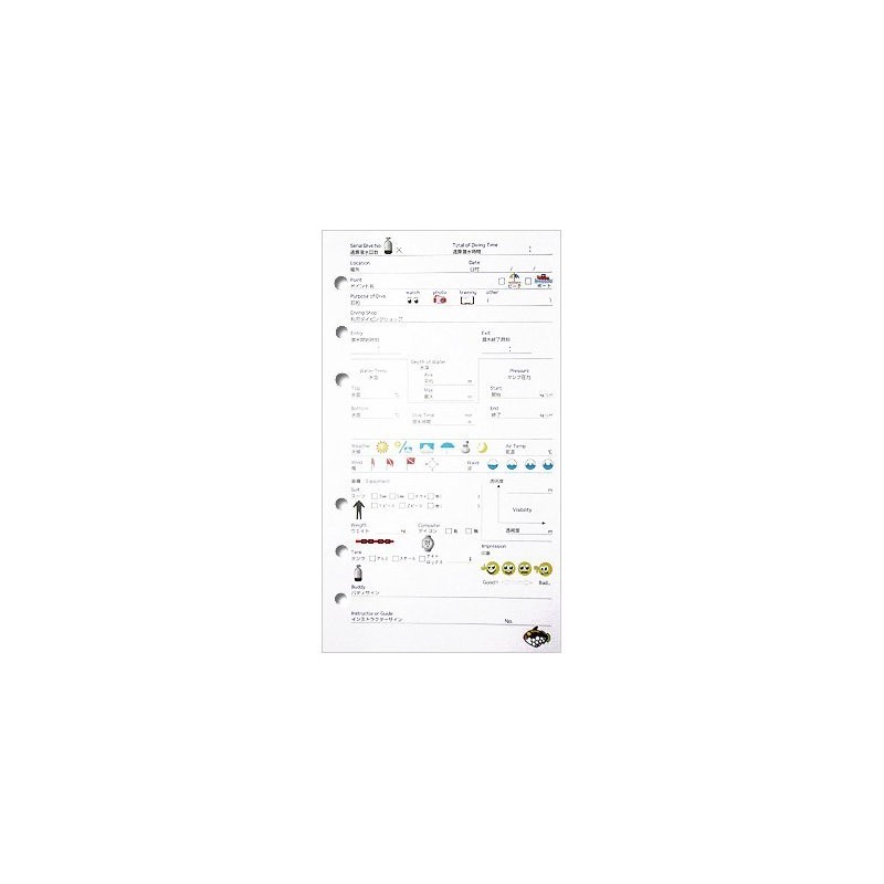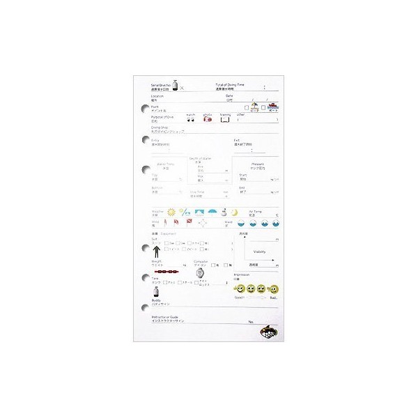 Diving Accessories Log Book Refill, Nautical Log, 6 Hole Type, KAIRAKU-6 MU-4547 (WT (White)