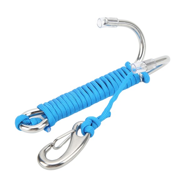 Diving Hooks Stainless Steel Double Reef Hook with Spiral Coil Lanyard for Underwater Activities Divers SafetyBlue