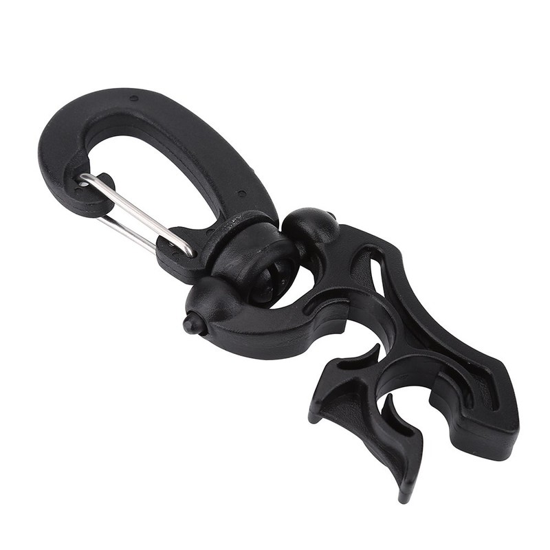 Diving Hose Clip 1 Twin BCD Low Pressure Hose Holder Bracket Support with Twist and Carabiner Hook Buckle, black
