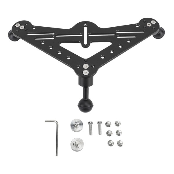 1、Wide Compatibility: Stabilizer tripod base bracket is compatible for Insta360, for Osmo Action, for Yi AKASOEK70004K action cameras, as well as mirrorless cameras. 2、Professional Underwater Photography: Designed specifically for underwater photography, with multiple mounting holes for accessories like handles, lights, and cages. 3、Durable Construction: Constructed from aerospace grade aluminum alloy using CNC technology, ensuring resistance to rust and durability. 4、Versatile Platform: Easily transform into a handheld stabilizer with handle connected to tripod, convenient for shooting. The installation is very simple and convenient. it can be installed in a few minutes, which is very convenient. 5、Design and Style: The triangular design provides a stable platform for your camera, reducing shake. The diving ball head tripod mount is easy to use and carry. it can be used as a camera tripod, tripod base, etc.