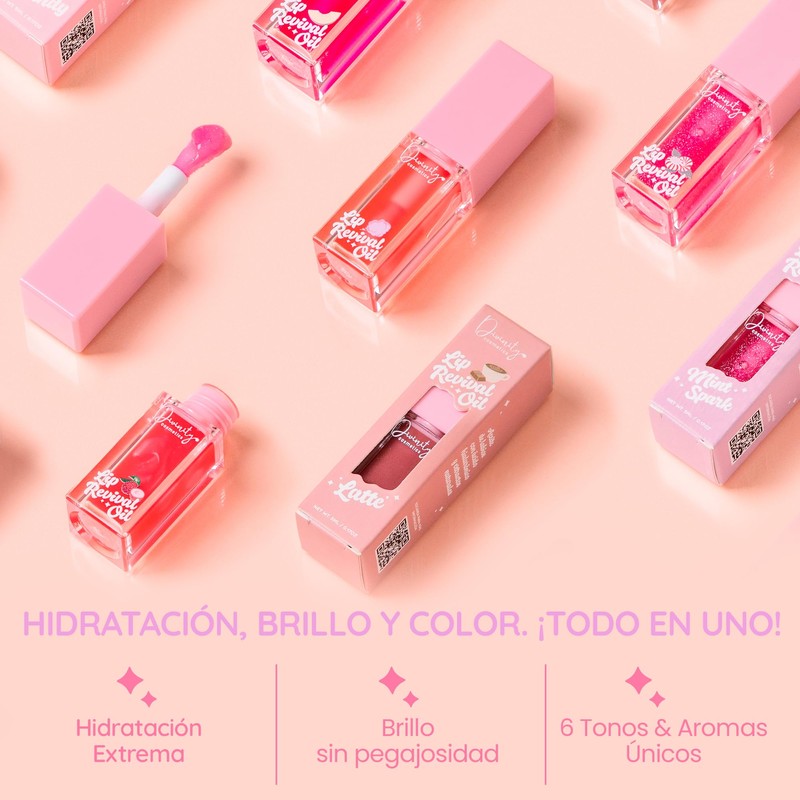 - Lip Oil con hidratación intensa – Fórmula enriquecida con aceite de argán, manteca de karité y ácido hialurónico que restaura y nutre tus labios.