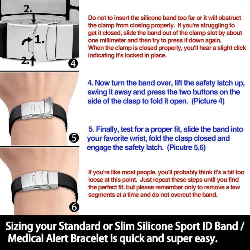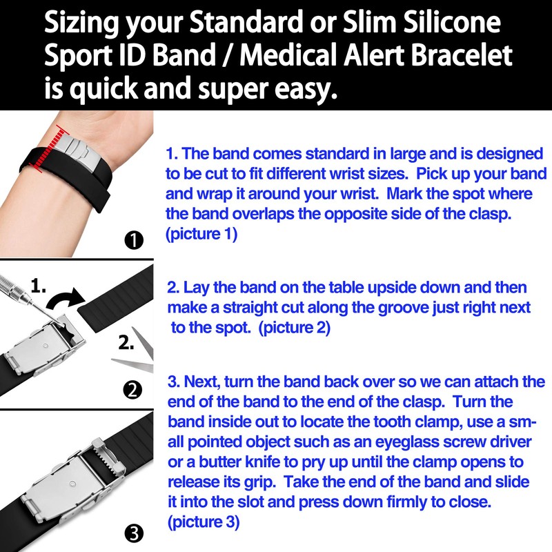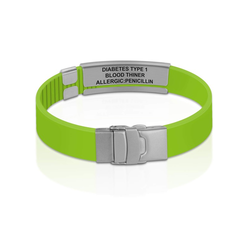 - 👍Stay safe and stylish with our hypoallergenic stainless-steel medical alert bracelet. It features an adjustable food-grade silicone band for a perfect fit (sizes between 4.5 and 9.5 inches). Choose from two widths - PRO: 19mm or ULTRA: 13mm.