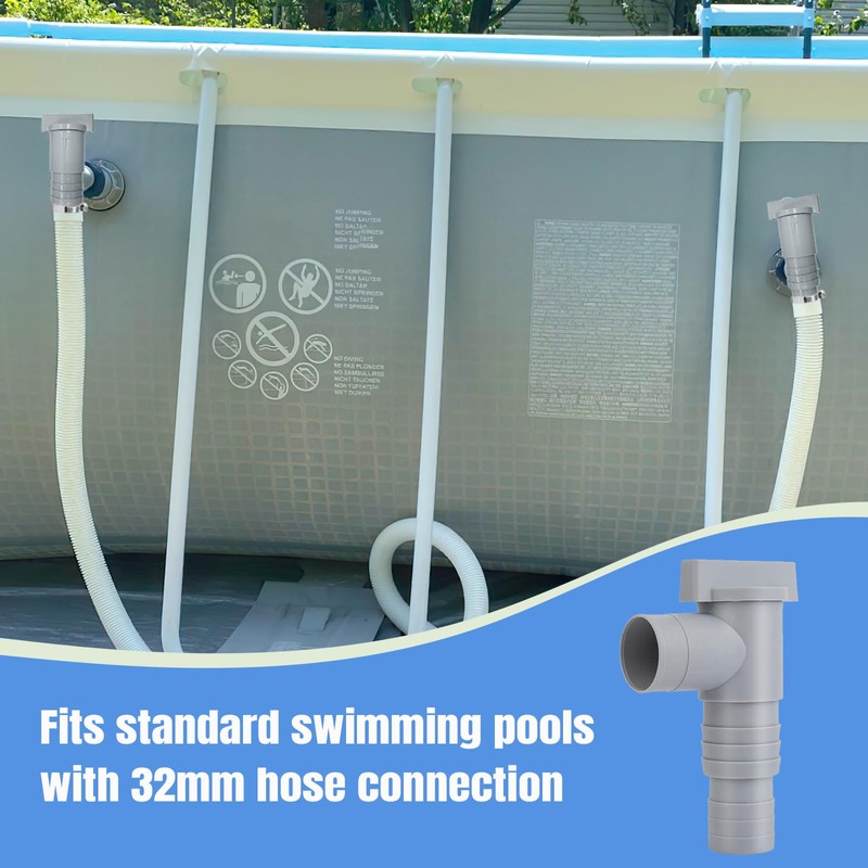 - Practical solution: the closure valves are suitable for above-ground pools with 32 mm hose connections that require inlet nozzles and outlet filters from the pool manufacturer. They can be connected to 32mm and 38mm pool hoses. Whether you are an experienced pool owner or a beginner, our 32mm pool connector kit will help you optimize the operation of your pool and ensure effective water regulation.