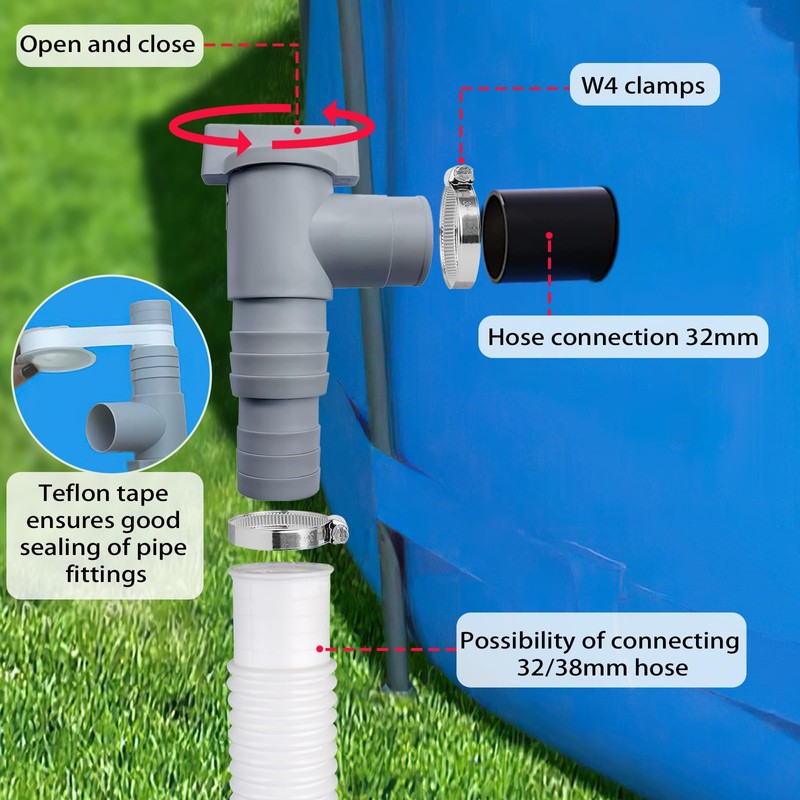 - Easy care: the 32 mm pool valve is easy to assemble, just use the included hose clamps to connect the pool accessories and then connect the hose of the filter system to the tap. Our pool valves make it easier to maintain and maintain your pool or filter system. If necessary, you can simply close the tap and replace the hose.