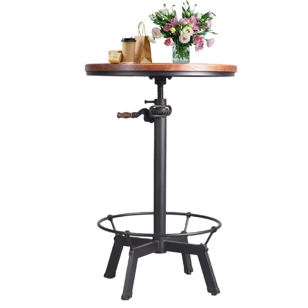 Diwhy Pub Set Industrial Style Adjustable Height 33.5-39.4in Dining Table Dia 23.6" Wooden Top with Handle Bar Table