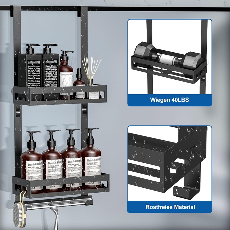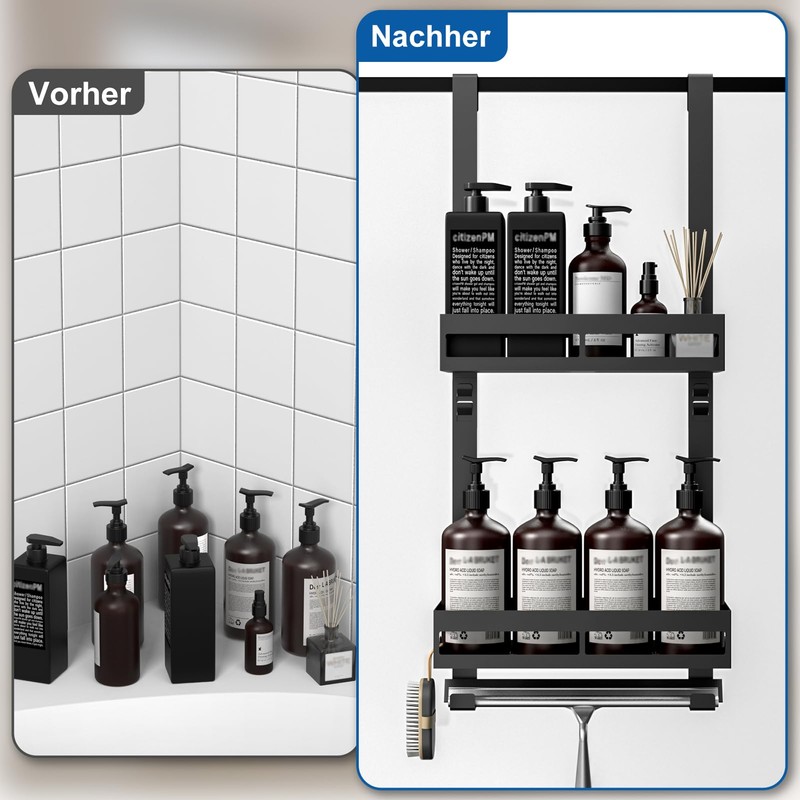 - Easy installation and no drilling: simply mount the shower shelf and you can easily hang the bathroom shelf on the shower door and reposition it at any time