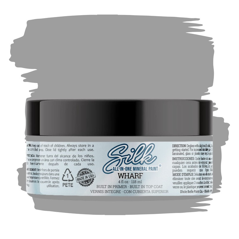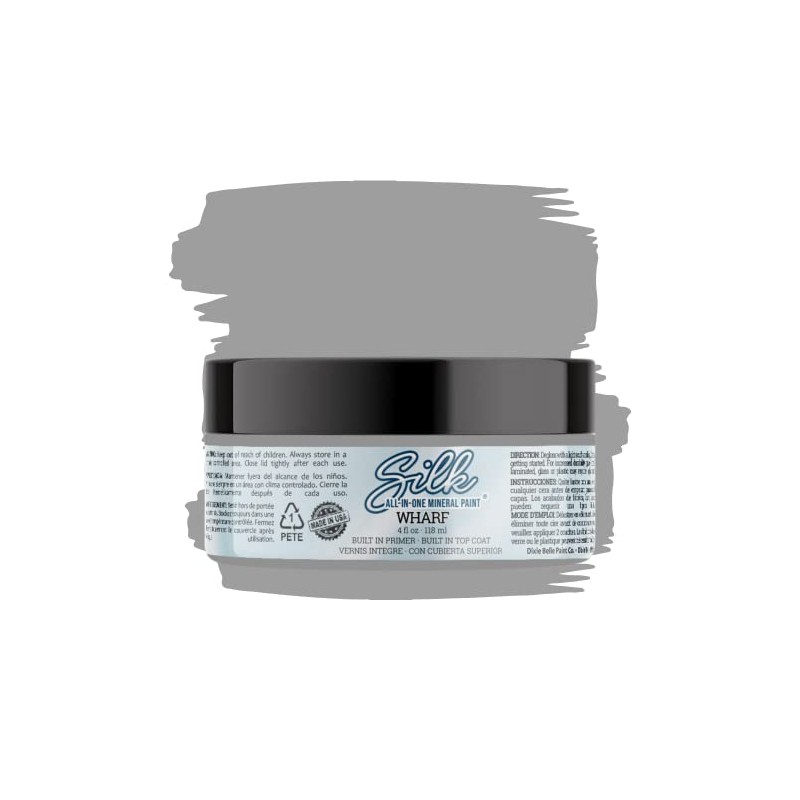 Dixie Belle Silk All-in-One Mineral Paint - Wharf (4oz) - Neutral Gray All-in-One Water Based Primer + Topcoat - Durable Furniture Paint - Low Reflective Finish