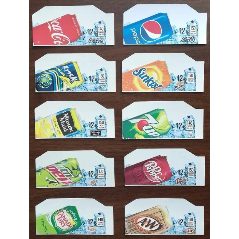Dixie Narco, Vendo, Royal Vendors, USI & FSI (10) Vendo 540 (V540) 12 oz "CAN" Vend Labels - Flavor Strips - VARIETY PACK