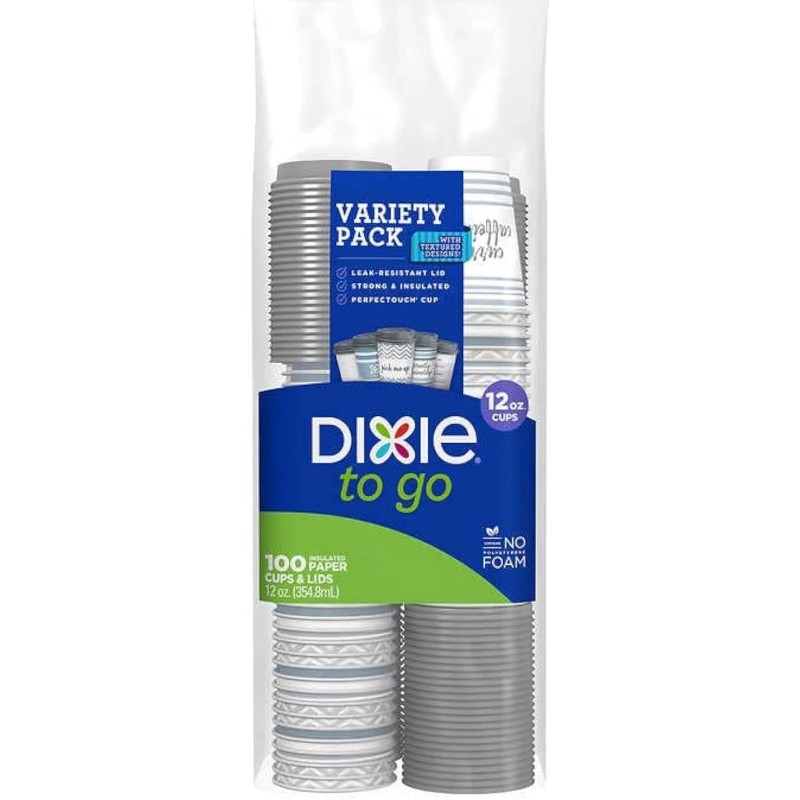 Dixie To Go 12 Ounce Insulated Cup & Lid, 100 Count, Free Shipping In USA