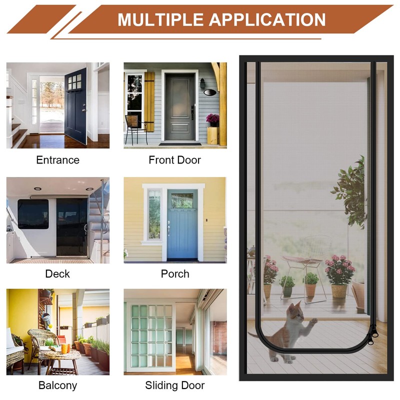 - Enhanced Stitches & Strap: Stitches has been upgraded with higher force sewing thread.It will prevent your screen door from rip due to cats claws and climbing. The short strap helps pull aside the screen door when you need to pass the door frequently.