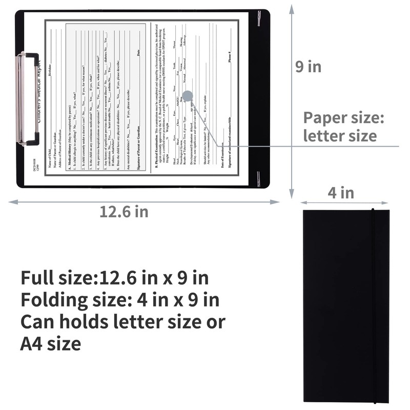 • Easy Carrying: The full size of the nursing clipboard is 12.6x9inch, the folding size is 4x9inch. This folding nursing clipboard can be fold half and you can carry it to everywhere. Improved size, more suitable for doctors or nurses to put in the pocket