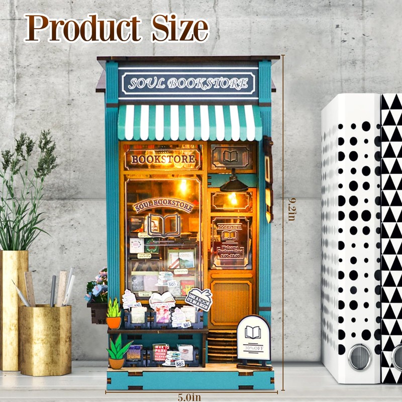 DIY Book Nook Kit - 3D Wooden Puzzle Dollhouse with LED - Miniature Bookshelf Decor for Teens & Adults - Bookend Creative DIY Miniature House Kit Unique Present Idea (Soul Bookstore)