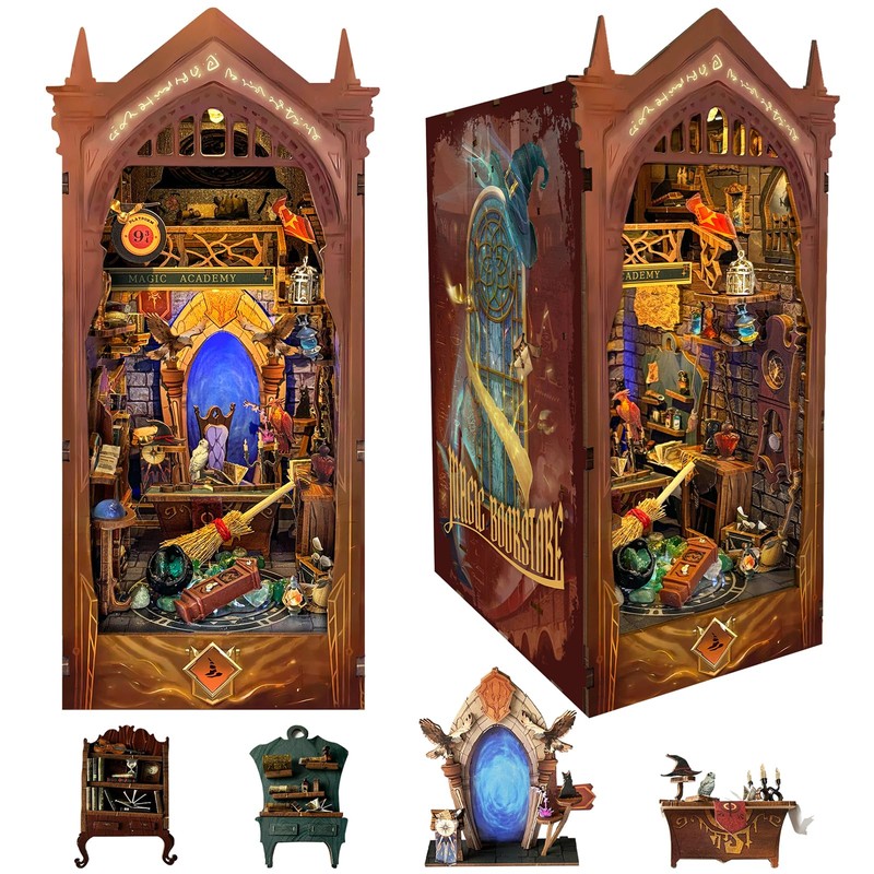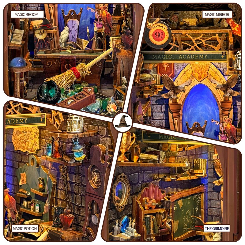 - Unique Design Concept – This book nook kit manifests a Magic Academy. A ready-to-fly broom by a mysterious potion cauldron, an open grimoire of arcane wisdom, and an enchanted mirror of hidden secrets. Together, they create a charming mini wizarding world, making your bookshelf a portal to a land of magic and adventure.