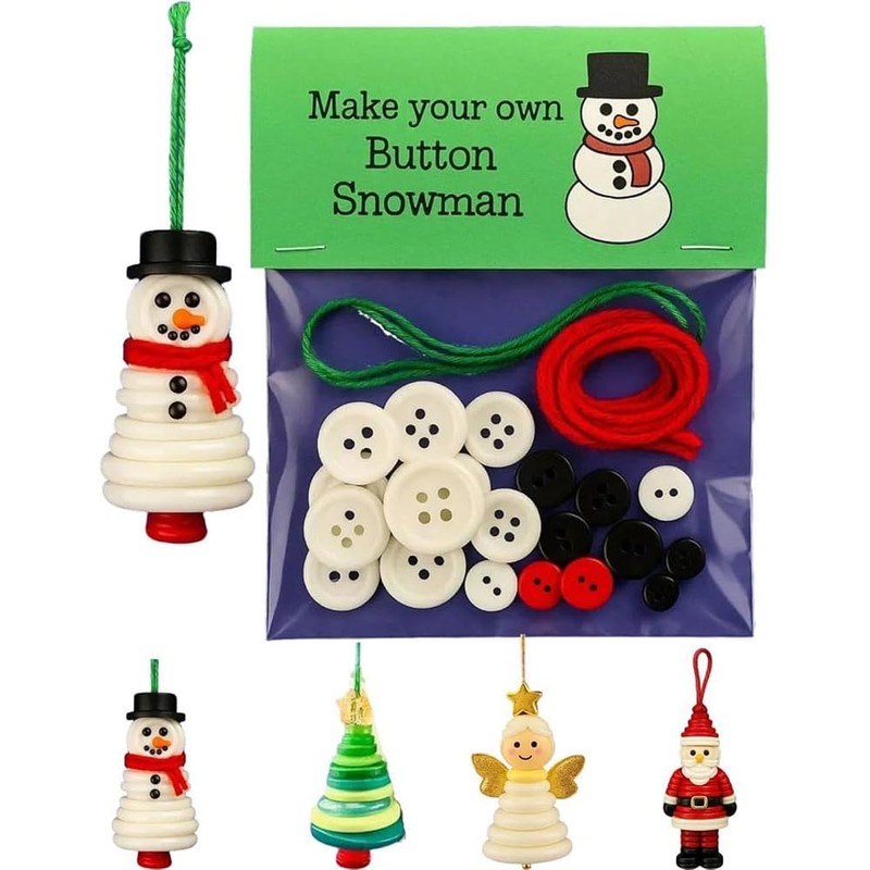 DIY Button Snowman Ornament Kit - DIY Christmas Button Ornament Making Set, C...