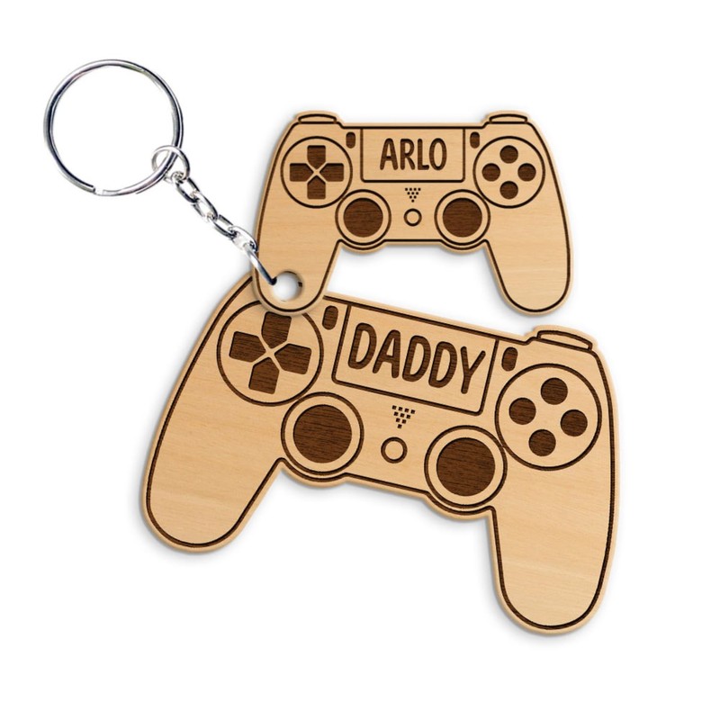 - Perfect Gift: This Video Game Controller Wooden Keychain Ornament makes the perfect gift for the gamer dad, whether it’s for Fathers Day, Birthday, or a Pregnancy Announcement. If your Dad loves gaming, then he will absolutely love this unique wooden game controller keyring. Give gamer dad/daddy/papa/pop/father a unique gift that he will cherish as a lifelong keepsake. You can also remove the keyring & add a ribbon to make a great Gamer Daddy and Baby ornament or stocking tag!