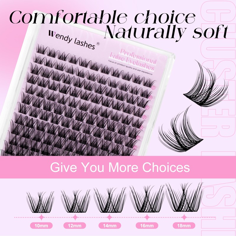 DIY D Curl Lash Clusters Individual Cluster Lashes Kit 10-18 mixed Wispy Lashes-kit Soft Set with 2 in 1 Lash Bond and Seal,Eyelash tweezers by WENDY LASHES(WD01-07-D-1018-Kit)
