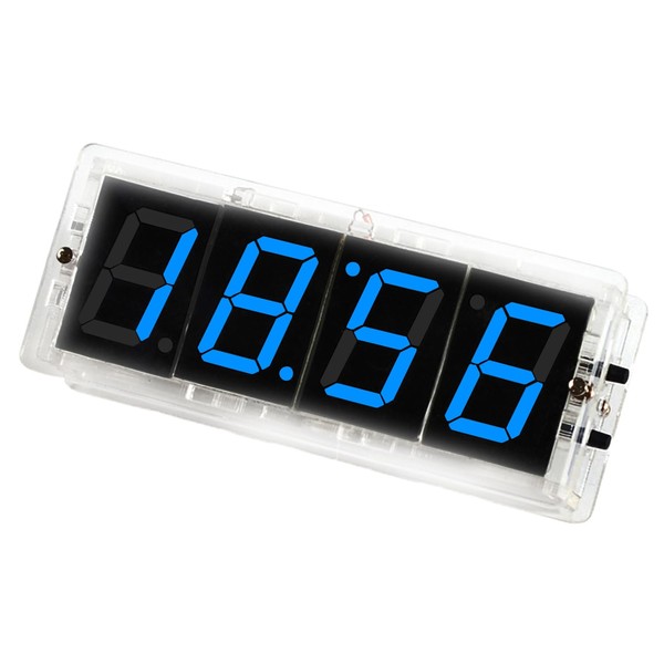 DIY Digital Clock Soldering Kit 4-Digit LED Display with Temperature Sensor, 12H/24H Alarm & Memory Function, STEM Electronics Project for Teens & Adults (Blue)