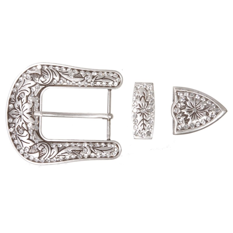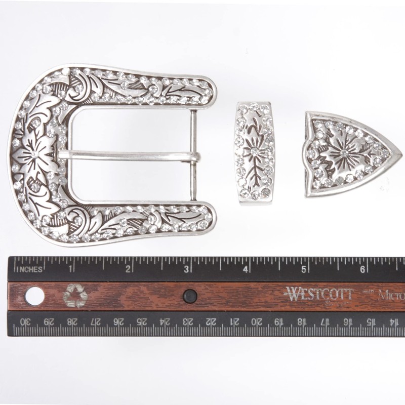 DIY Rhinestone Western Bling Buckle 3-piece Set for Replacement or leathercraft, pure old silver