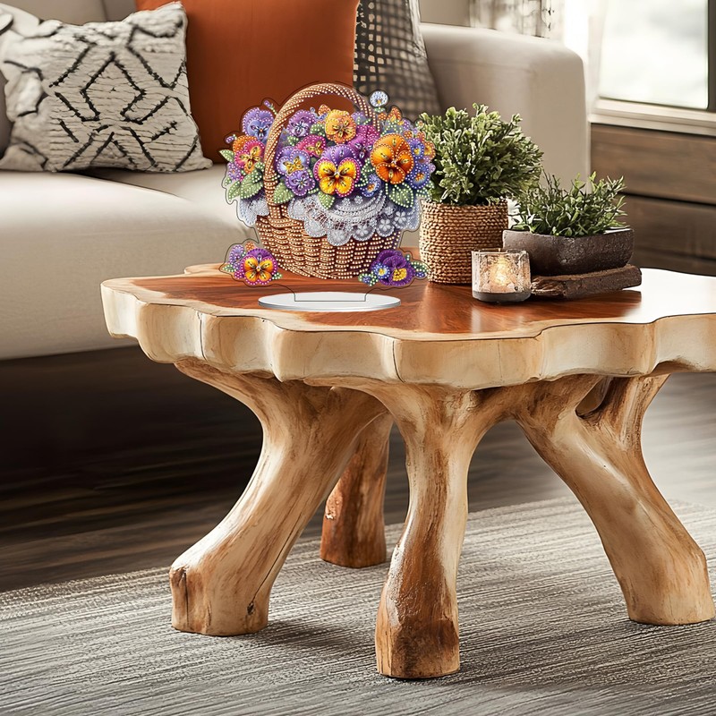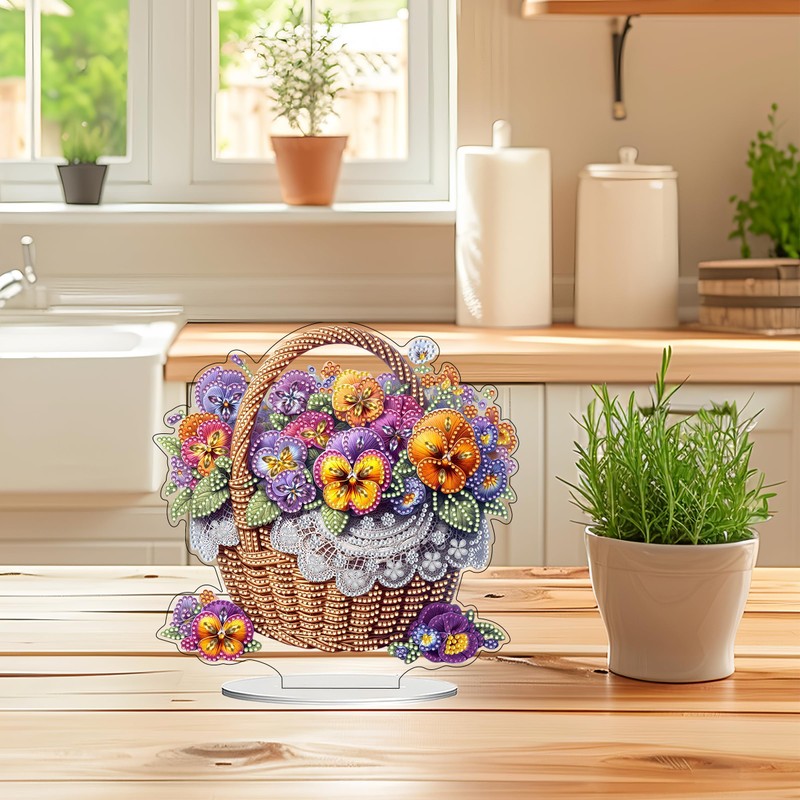DIY Tabletop Diamond Art Kit for Adult – 5D Gem Painting Art Desktop Ornament with Special Shaped Rhinestones, Acrylic Stand-Up Gem Craft for Home Décor & Gift Idea (Flower Basket)