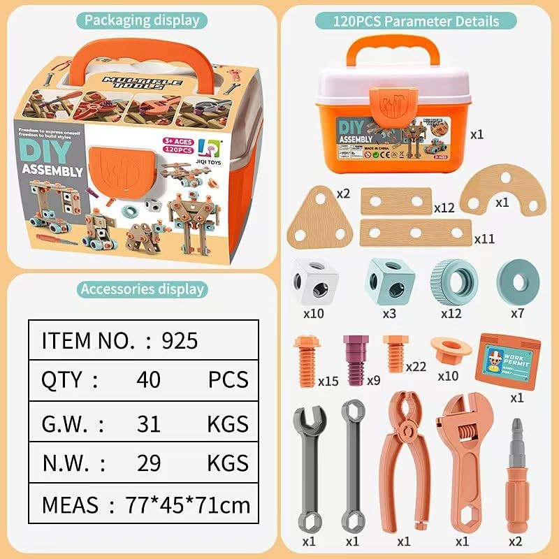 - COMPLETE SET: 119-piece DIY construction toy tool set including wrenches, screwdrivers, nuts, bolts, and various connectors for endless building possibilities