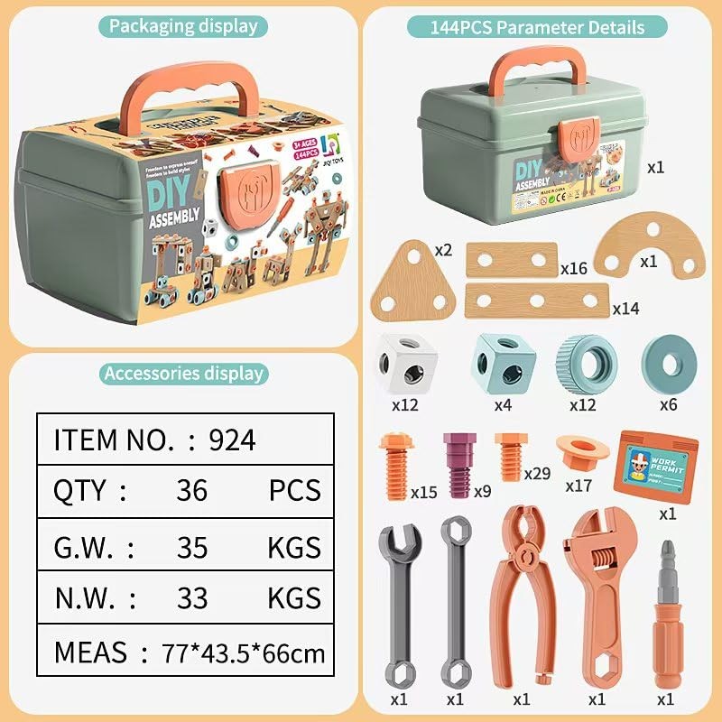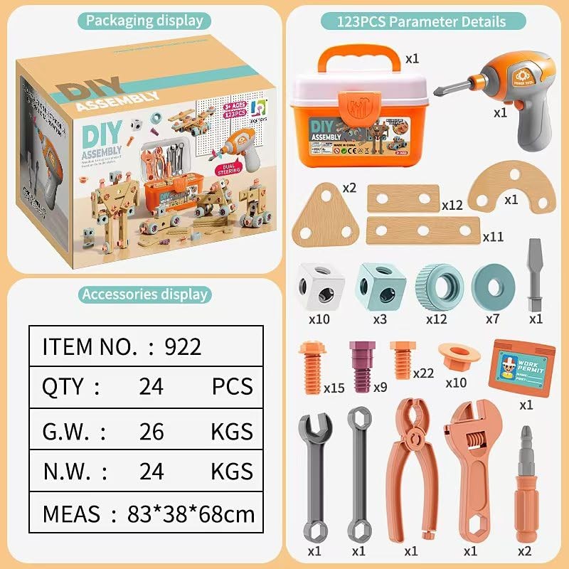 DIY Tool Set for Kids, 119 Pieces, Educational Building Construction Kit with Toy Tools