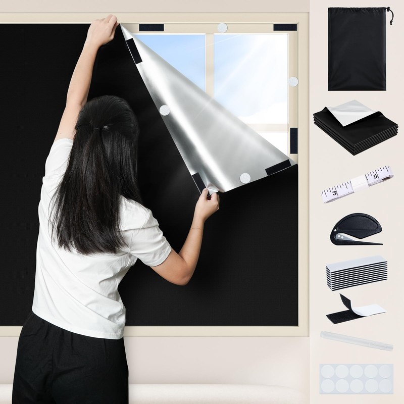 - 【遮光・遮熱・紫外線カット】本遮光シートは、420Dポリエステル素材に遮熱シルバーコーティングを施し、完全に光を遮断する窓用遮光シートに仕上げています。強烈な日差しを完全に遮蔽することで、真夏においても快適な室内環境を維持し、紫外線を99%以上カットします。この効果により、日焼けによる肌へのダメージや家具の色褪せを効果的に防ぐことができます。さらに、西日対策としても最適であり、エネルギー消費の節約にも寄与します。