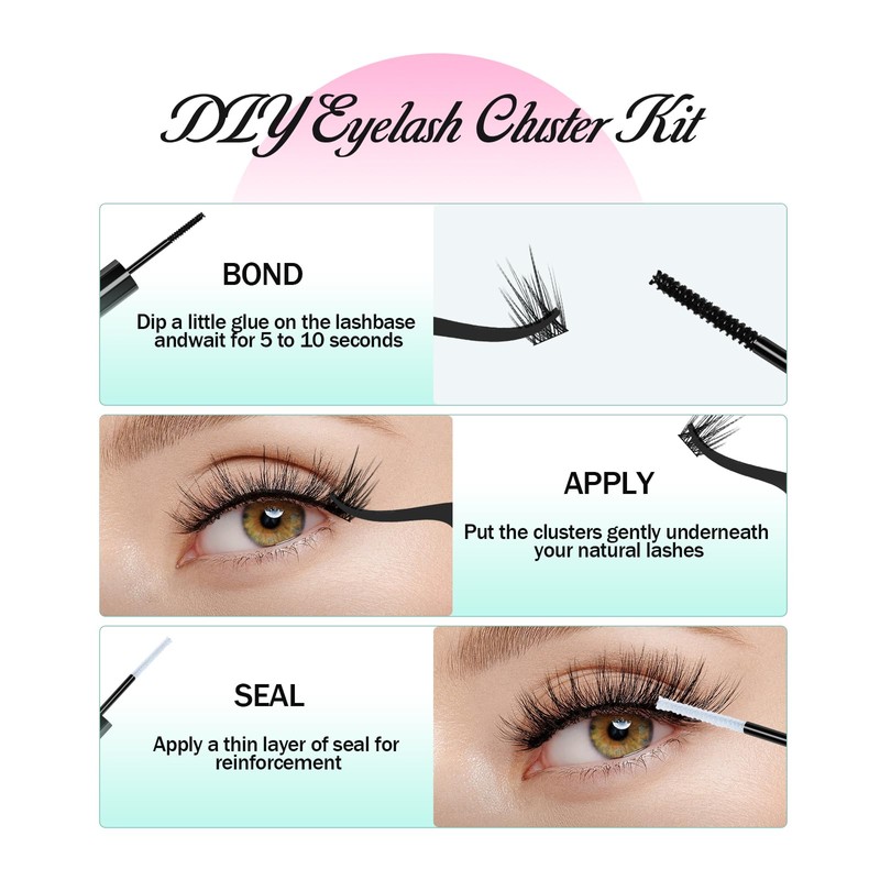 - 【Einfach zu tragen und zu entfernen】: Verwenden Sie sichere Materialien für die Wimpernbindung und den Wimpernversiegelungskleber. Der Pinsel des Wimpernclusterklebers ist sehr präzise und der Clusterlashkleber hält bis zu 24 bis 48 Stunden.