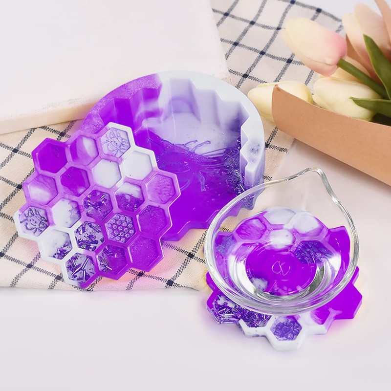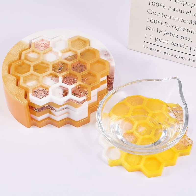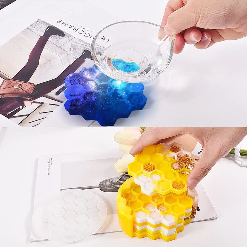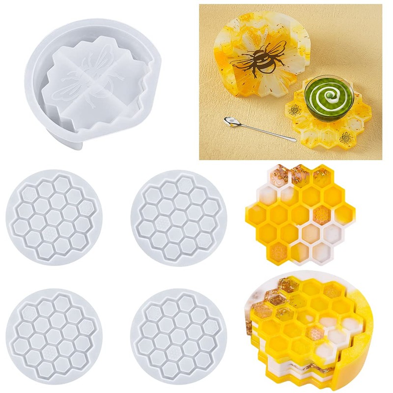 - What You Would Get: The kit set includes 4pcs silicone honeycomb coaster molds and 1pc bee box mold to keep your personal belongings organized.