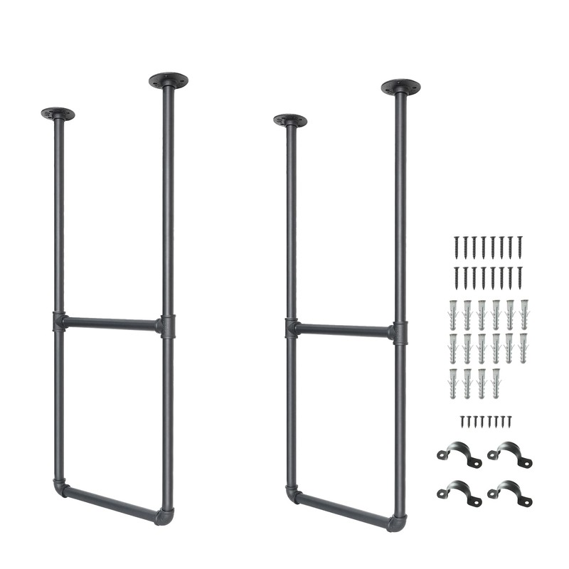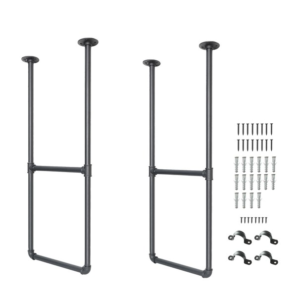 DIYHD 2 Tier Ceiling Mount Black Shelf Bracket,U Shape Pumbing Pipe Kitchen Storage Brackets (No Planks), 37" Bracket-2 Pairs
