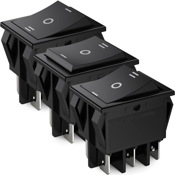 DIYhz 3-Speed AC16A/125V 16A/250V 6Pins 2 Position On/Off Black Rocker Switch 3Pcs