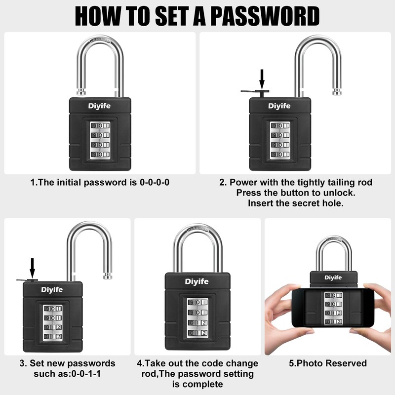 - 【Hidden Unlock】The original password of the lock is 0-0-0-0-0. after the password is adjusted, press the bottom button to unlock the lock, it is very easy to use. Note: When you change the password, please take a picture to record the new password, so as not to be unable to open it