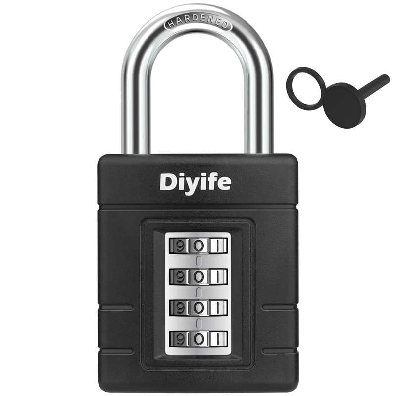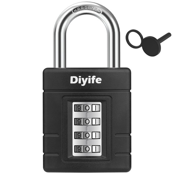 Diyife 4 Digit Combination Padlock Outdoor, Heavy Duty Lock with Thick Stainless Steel Locking Beam, One-Key Unlocking [Anti-Shear], for Home, Schools, Gyms, Sports Lockers, Garage, Fences