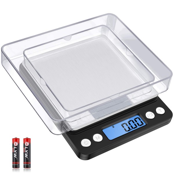 Diyife Balanza de Cocina 500g/0.01g, Escala de Alta Precisión/Báscula Digital/Báscula de Bolsillo/Básculas de Joyería, Función de Tara y PCS, con LCD Retroiluminación, 2 Bandejas - Negro