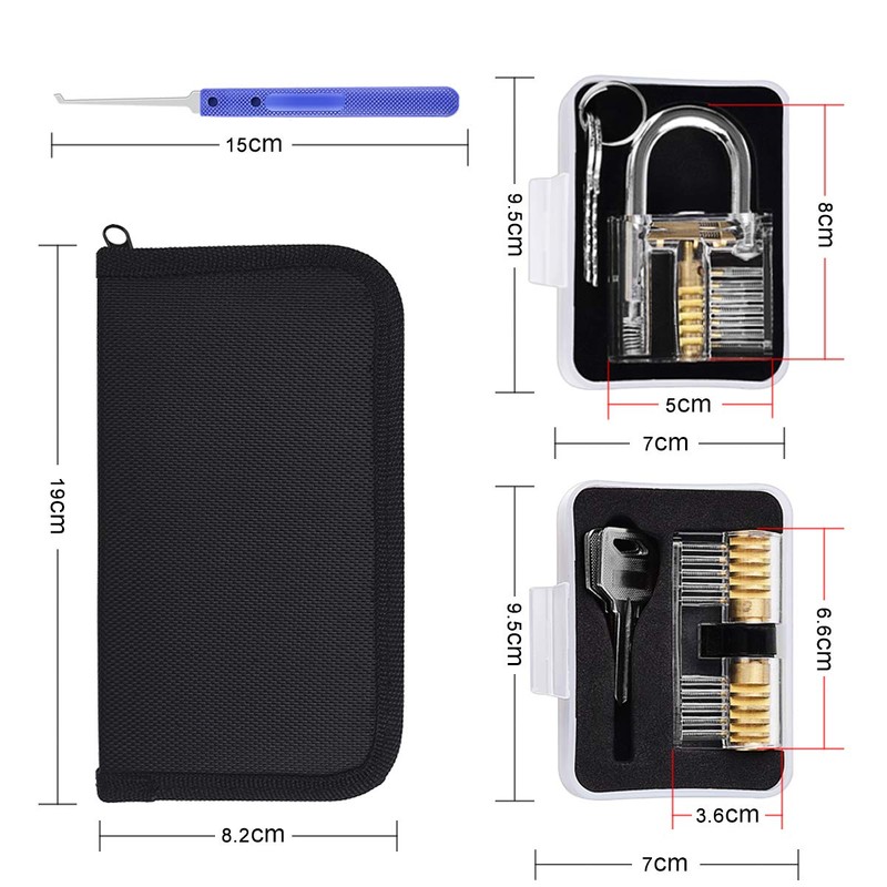 - 【Nice Gift - Exquisite Packaging】All itmes are packed in the nice black zipper bags that are soft, protective and layered, each with a suitable clip for holding tools. The transparent locks are also placed in separate boxes to avoid scratches and rust, and have good portability. Will be a good gift choice for family, friends who enjoy the lock picking challenge!