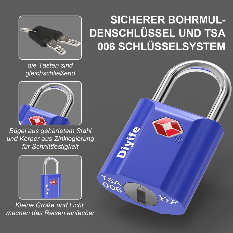 Diyife TSA Luggage Locks, [2 Pieces 4 Keys] Key Lock Security Lock Travel Lock for Travel Suitcase Suitcase Luggage Bag Case etc. (Blue)
