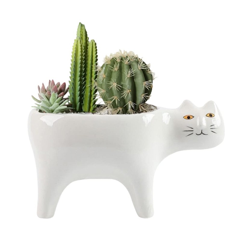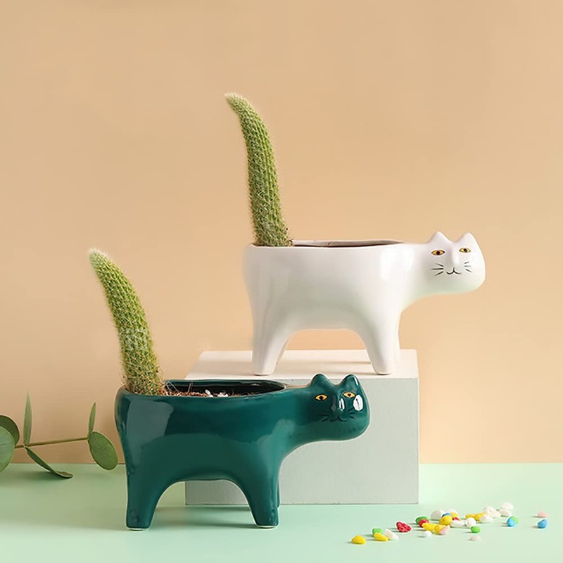 - 【MATERIAL & SIZE】Our cat planter is made of ceramic material, fine workmanship, smooth surface, easy to clean, not easy to oxidize and fade, can use a long time. Approximate 6.22"L*3.0"W*3.15"H, recommend for mini/small succulent/cactus/flower/little plants/air plant and etc.