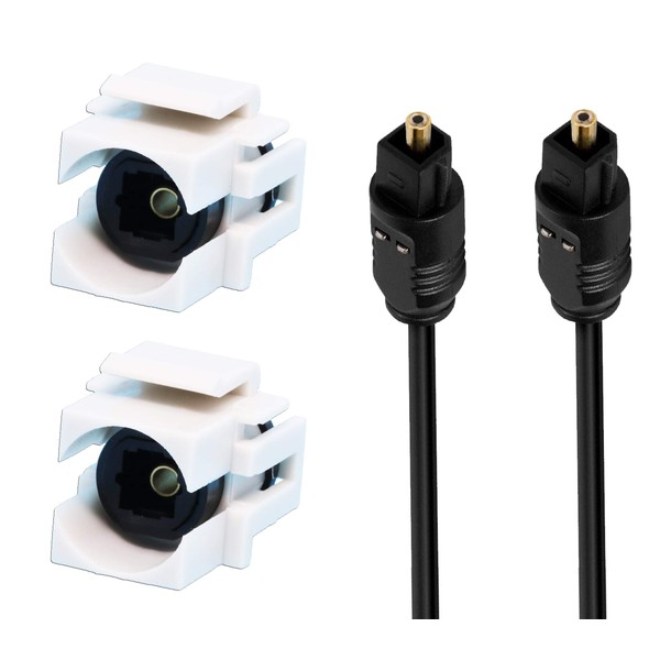 DIYTECH Toslink Keystone Jack, Female to Female SPDIF Coupler, Includes Optical Audio Cable, White (2 Pack)